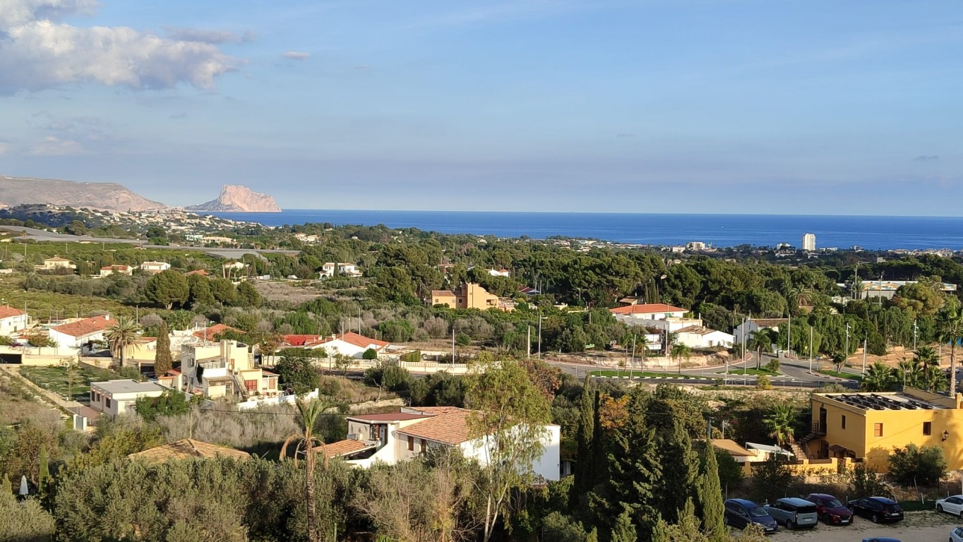 UNIQUE LOCATION - TOPFLOOR DUPLEX APARTMENT WITH PANORAMIC VIEWS FROM BOTH FLOORS AND A COMMUNAL POOL. This apartment had originally 3 bedrooms, 1 has been included in the living room, but can be reestablished, and upstairs at the roofterrace there is a covered area that can be used as a guestroom, where there also is a kitchen, so in total 2-4 bedrooms. At the entrance level, there is a constructed area of 93 m2 (net 83 m2) and a staircase to the spacious roof terrace with private use of 87 m2. At the entrance level, there is the living room with access to a balcony, and there are 2 bathrooms, one with shower and one with bath tub. There is a separate kitchen and next to is a laundry room. From the roof terrace there are amazing panoramic views and there is a big "chill out" area, with a jacuzzi and a shower, at present there is art decoration of the walls. There is also a covered area with a kitchen and a sofa area, and a storage room. In the price is included a garage space. The apartment is in a well kept building with a very nice communal pool area, one of the few apartment buildings in Alfaz del Pi with pool. Located with very short walking distance to the old town, restaurants, shops and public transport, and near by is the sports stadion and the Cultural building with Library and many activities. MUST BE SEEN. Contact us for viewings.