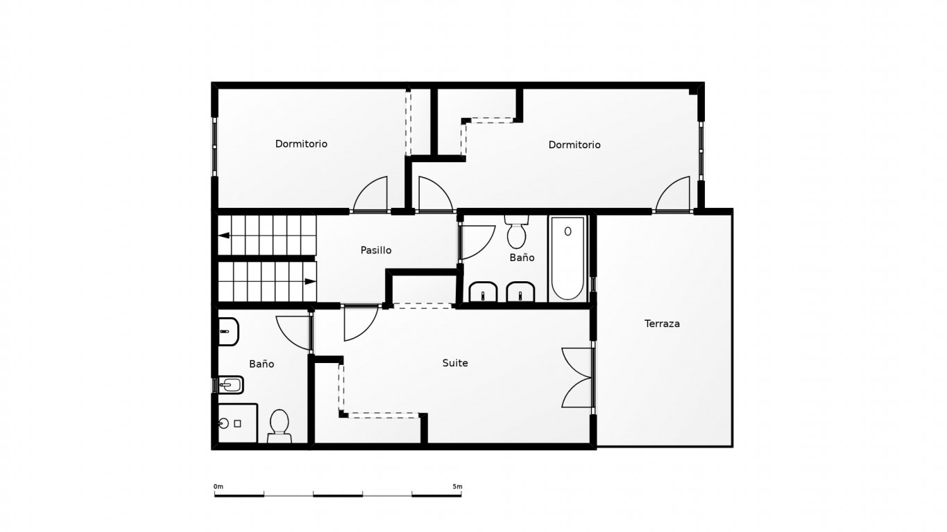 On the ground floor, you will find a spacious living-dining room with an open kitchen, one bedroom, and a full bathroom, which is very convenient. The upper floor has another three bedrooms, all with fully fitted built-in wardrobes. The master bedroom has an en-suite bathroom and direct access to a private terrace.