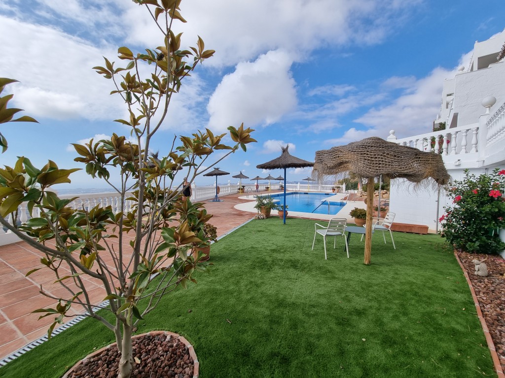 Adding to its appeal, the property includes a private garage and a guest parking space directly by the entrance. The beautifully maintained pool area offers a serene retreat with spectacular coastal views—an idyllic spot to unwind and soak up the Mediterranean sunshine.