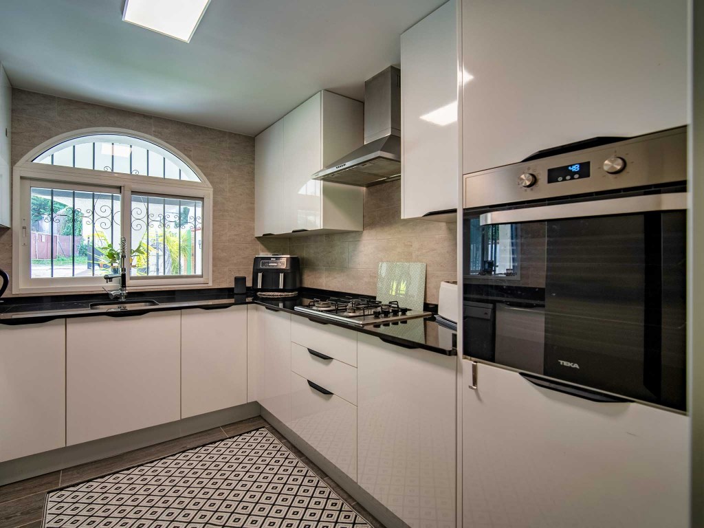 The villa is all on one floor for added convenience and has four bedrooms with plenty of natural light. Ideal for families or as a space to entertain friends. In addition, it has three modern bathrooms and an independent kitchen.