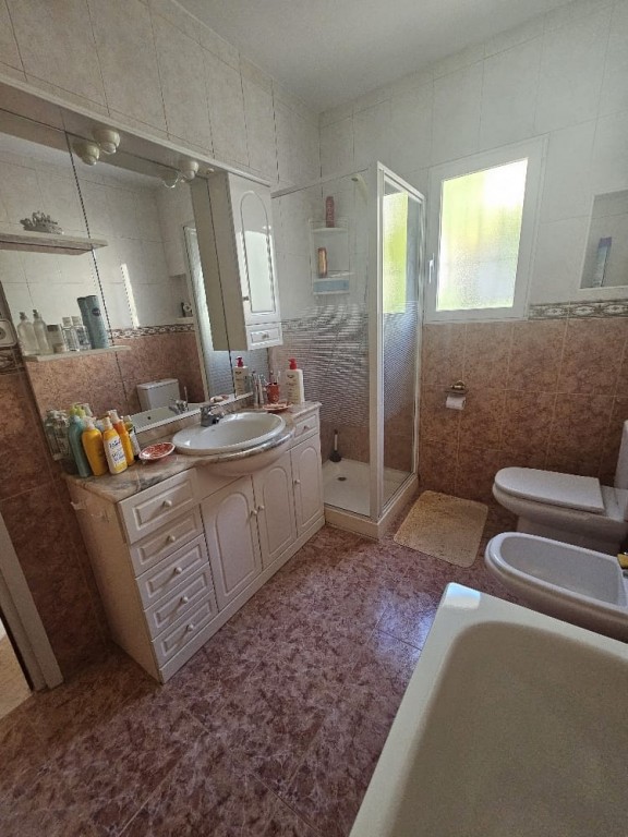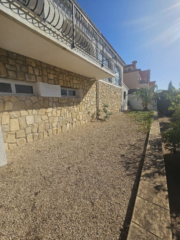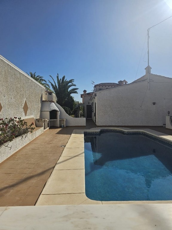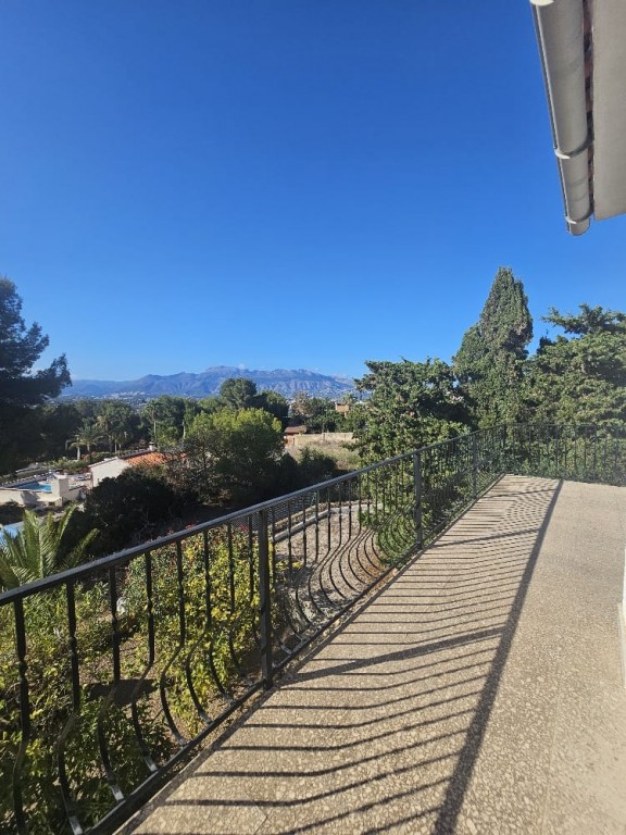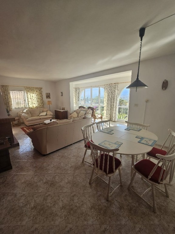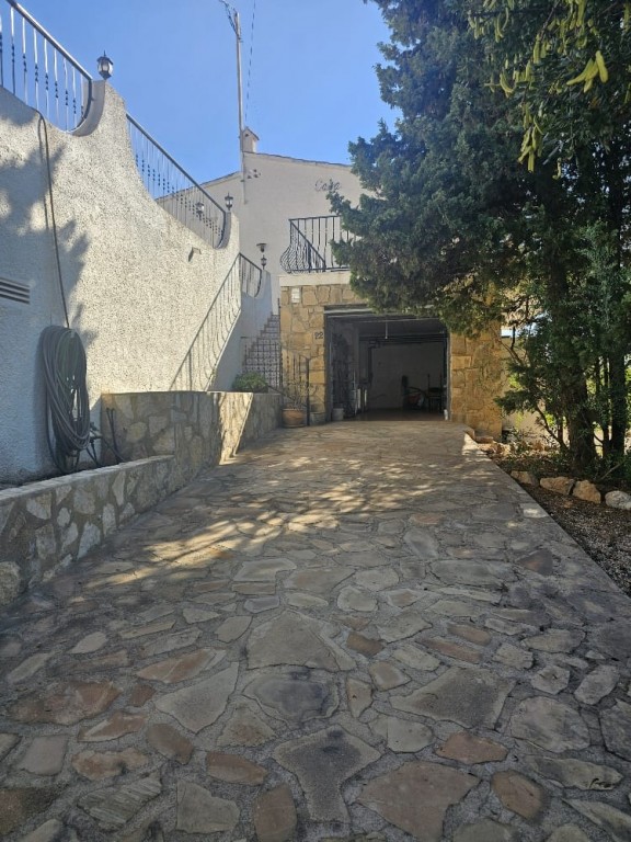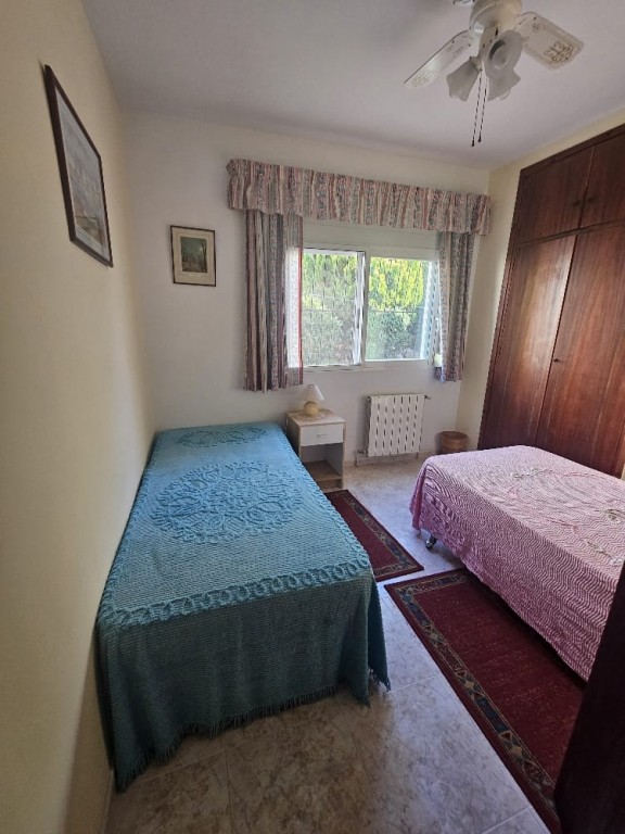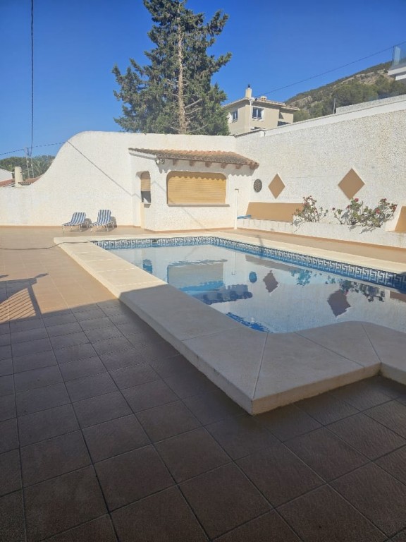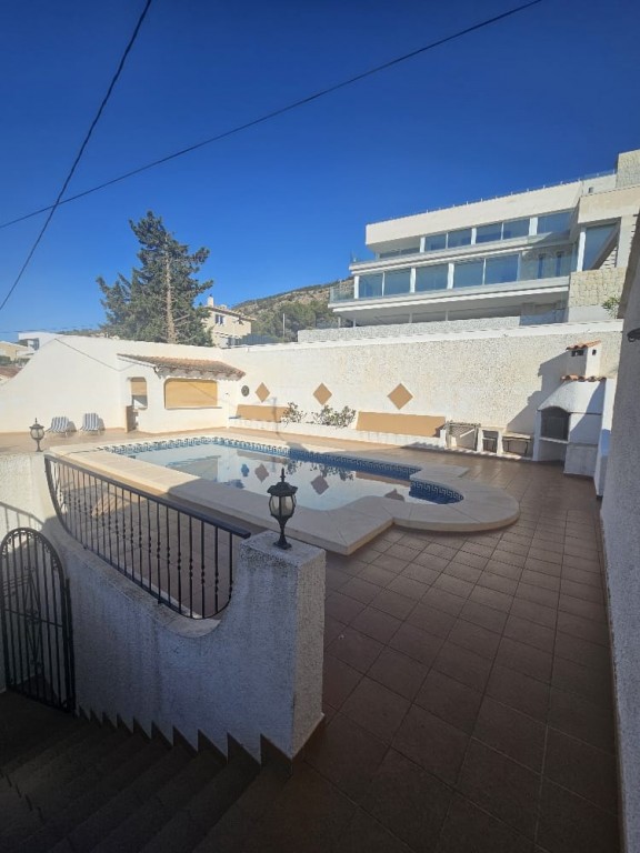 This peaceful property offers 5 bedrooms, 3 bathrooms, a separate kitchen, and a spacious living room with a fireplace, and direct access to a terrace with beautiful sea-, and mountain views. It features a private swimming pool, barbecue area, and a nice garden, with fully privacy. Gas heating. Located on a quiet cul-de-sac, with no traffic. The property requires some cosmetic renovation. Approximately 1.2 km from the town center. Close to the prestigious SHA Wellness Clinic in ALBIR.
