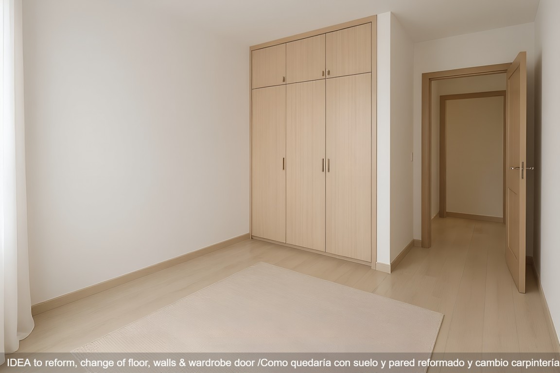 The living–dining room is equipped with air conditioning and opens onto a 22 m² patio garden, perfect for relaxing, creating a chill-out area or enjoying outdoor dining. The apartment is north facing, which means it receives less direct sun, but this can be a real advantage as summers become longer and hotter, helping to keep the interior pleasantly cool.