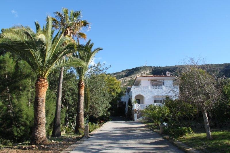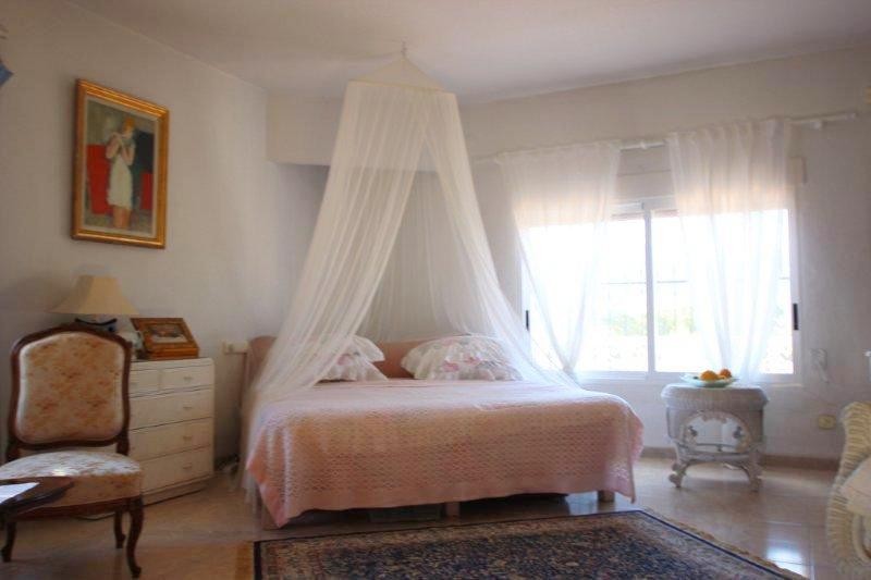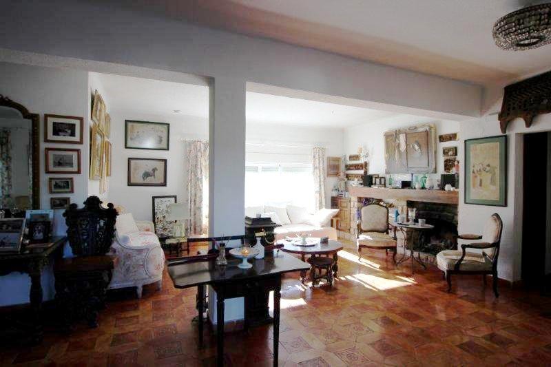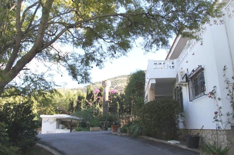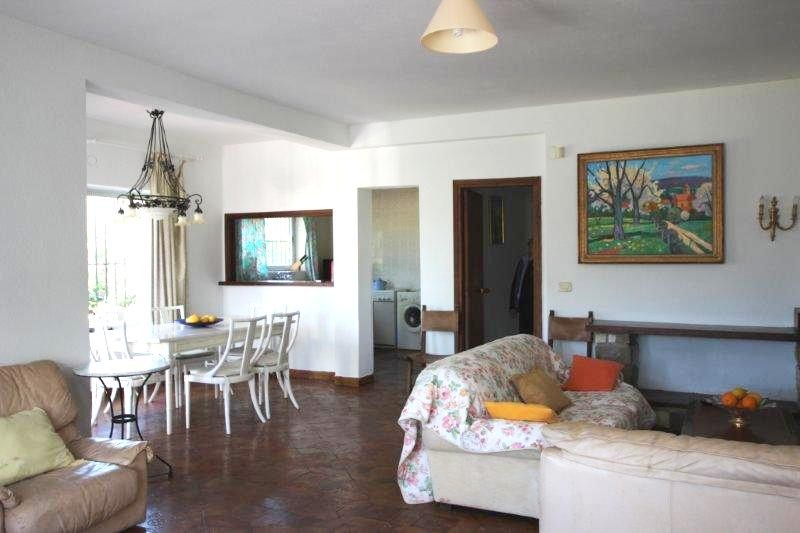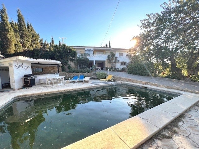 -COZY VILLA WITH SWIMMING POOL, AND WITH AN URBAN PLOT OF 2.220 M2, IN A VERY NICE AREA IN ALBIR. This villa has a seperate apartment, and a studio with a separate entrance on the ground floor. The villa is located in a quiet area but close to all amenities. The house consists of: an apartment with three bedrooms, two bathrooms, american kitchen, and living room with fireplace. The studio, and the main house on the first floor, consists of a spacious living room with fireplace, kitchen, a very large bedroom, a spacious bathroom, and a large terrace overlooking to the mountains, and the sea. At the pool area is a nice bar. The poperty has 3 entrances from 3 different streets, therefore it is very easy, to construct from 3-4 hoses more on this plot, it depends if you construct semi detached, or independent villas there...The groundfloor Apartment, and the Studio, can easily be rented out! -Don't miss this oportunity!!!