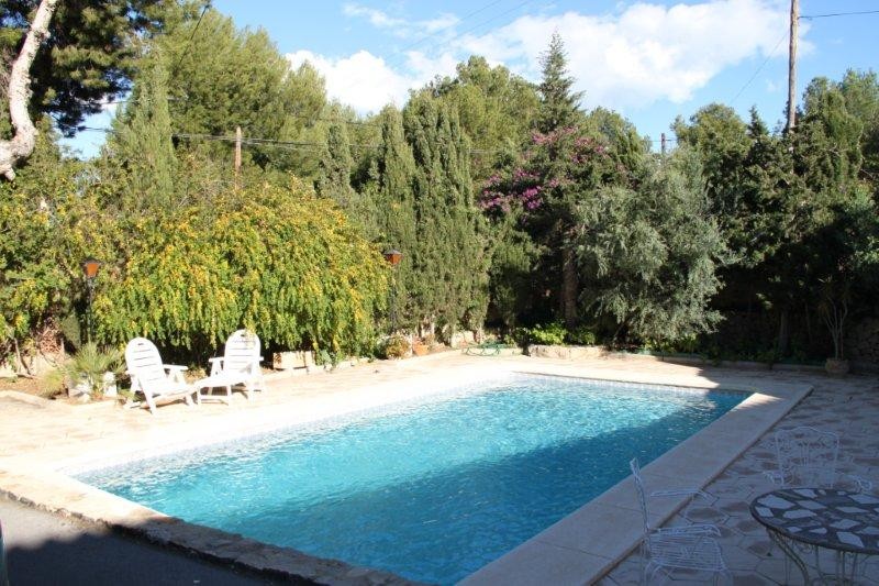 -COZY VILLA WITH SWIMMING POOL, AND WITH AN URBAN PLOT OF 2.220 M2, IN A VERY NICE AREA IN ALBIR. This villa has a seperate apartment, and a studio with a separate entrance on the ground floor. The villa is located in a quiet area but close to all amenities. The house consists of: an apartment with three bedrooms, two bathrooms, american kitchen, and living room with fireplace. The studio, and the main house on the first floor, consists of a spacious living room with fireplace, kitchen, a very large bedroom, a spacious bathroom, and a large terrace overlooking to the mountains, and the sea. At the pool area is a nice bar. The poperty has 3 entrances from 3 different streets, therefore it is very easy, to construct from 3-4 hoses ...