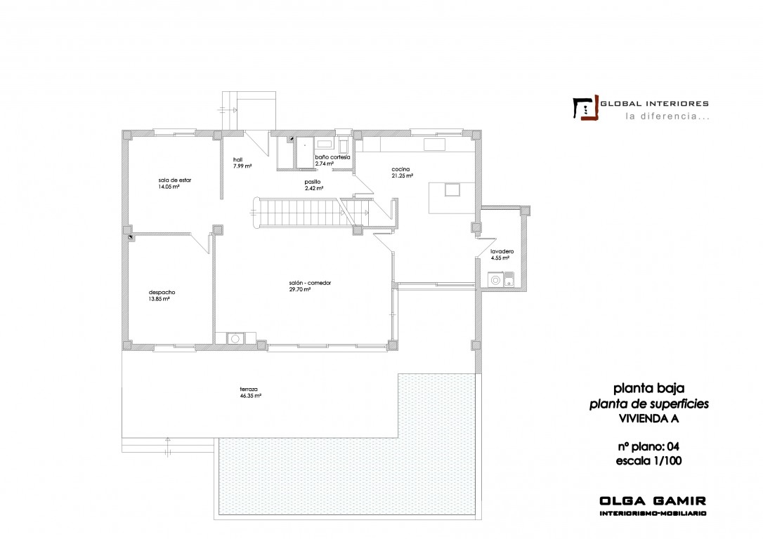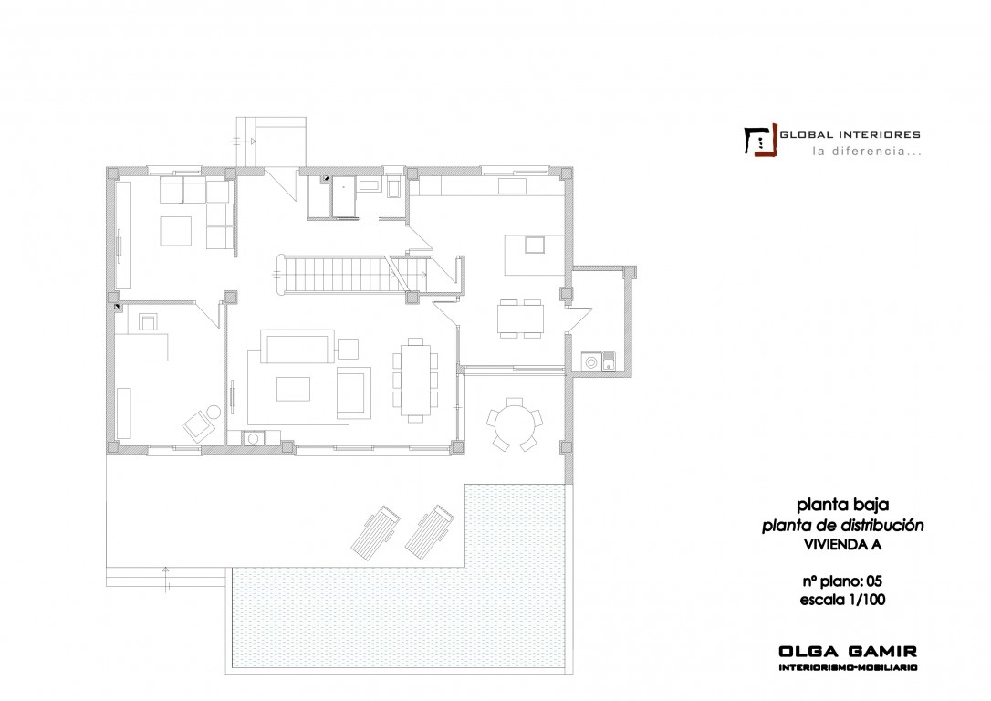 - From the living area there is direct access to the terrace (47m2) and swimming pool.