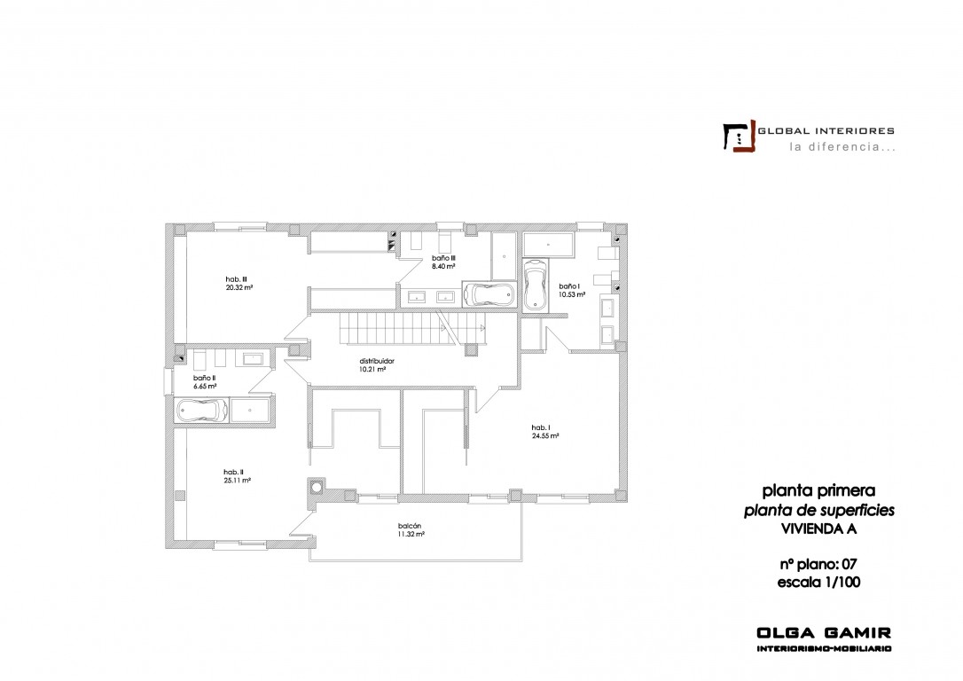 - 3 en suite bedrooms (25,5m2, 25m2, 20,5m2). Each one has its own walk in wardrobe and bathroom.
