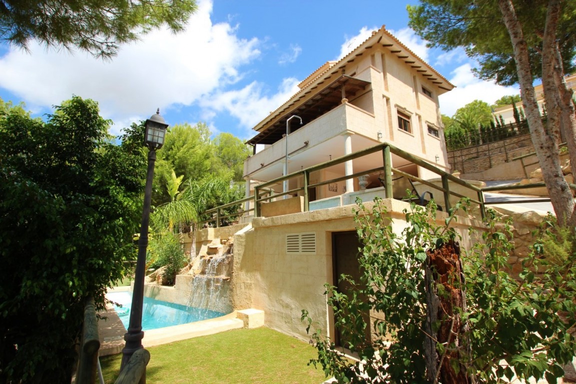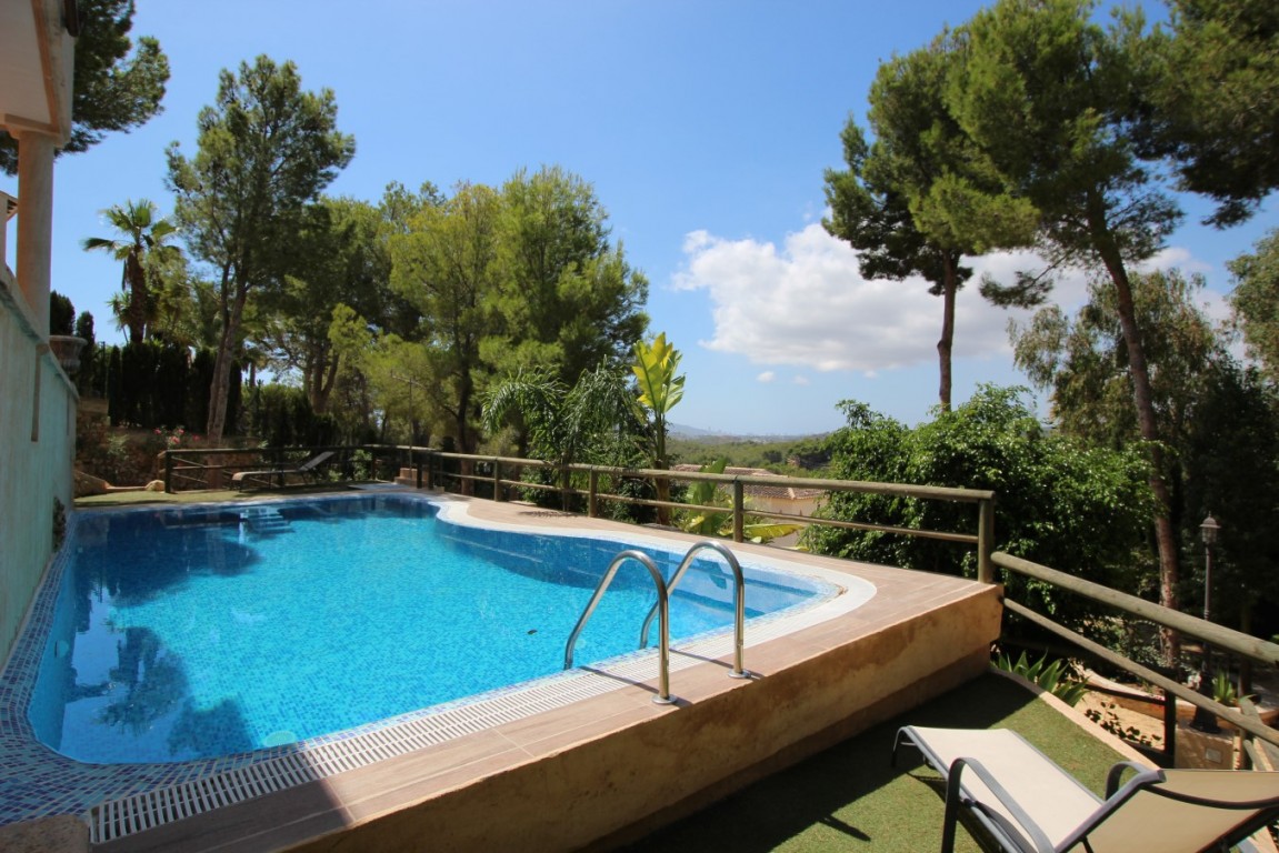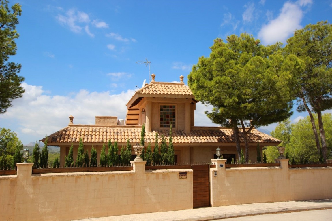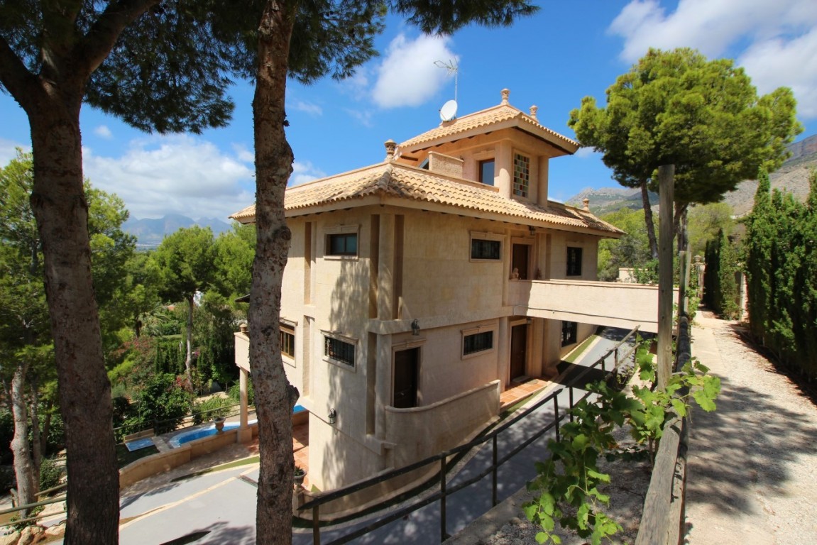 FANTASTIC THREE FLOOR VILLA WITH PANORAMIC SEA AND MOUNTAIN VIEWS, IN A NATURE AREA NEAR THE SIERRA BERNIA. PRIVACY AND IN A QUIET AREA. THE HOUSE IS LOCATED IN THE DISTANCE OF ONLY A COUPLE OF MINUTES OF ALTEA LA VELLA, VERY CLOSE TO THE DON CAYO GOLF COURSE, AND 5-10 MINUTES FROM THE L'OLLA BEACH. Housing equipped with demotic accessories, remote controlled blinds, solar installation, air conditioning with heat pump, 3 bathrooms with underfloor heating, 5 bedrooms, kitchen of 30 m2 with access to large terrace, living room with fireplace, large solarium, downstairs a 200m2 outdoor kitchen with wood oven to make bread, next to one of the pools, 2 swimming pools with shower, nice garden, and land of 1200m2 with several parking areas. The property is sold furnished.