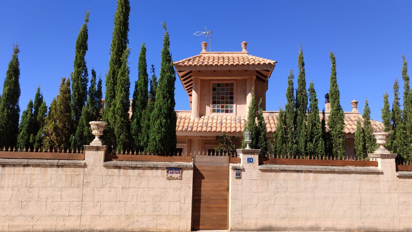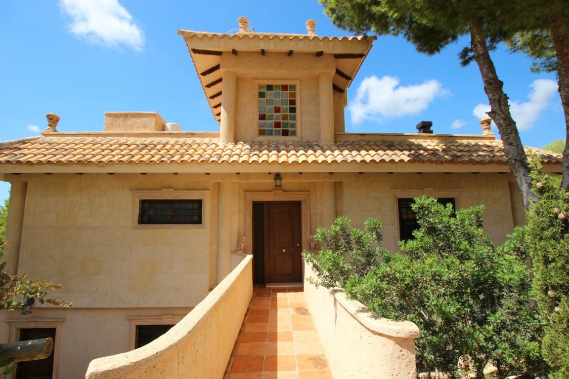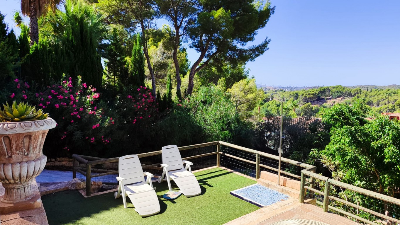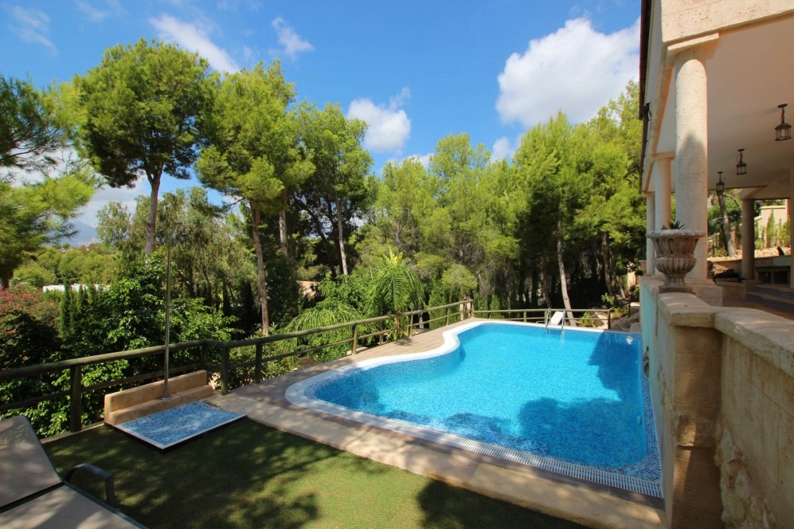 FANTASTIC THREE FLOOR VILLA WITH PANORAMIC SEA AND MOUNTAIN VIEWS, IN A NATURE AREA NEAR THE SIERRA BERNIA. PRIVACY AND IN A QUIET AREA. THE HOUSE IS LOCATED IN THE DISTANCE OF ONLY A COUPLE OF MINUTES OF ALTEA LA VELLA, VERY CLOSE TO THE DON CAYO GOLF COURSE, AND 5-10 MINUTES FROM THE L'OLLA BEACH. Housing equipped with demotic accessories, remote controlled blinds, solar installation, air conditioning with heat pump, 3 bathrooms with underfloor heating, 5 bedrooms, kitchen of 30 m2 with access to large terrace, living room with fireplace, large solarium, downstairs a 200m2 outdoor kitchen with wood oven to make bread, next to one of the pools, 2 swimming pools with shower, nice garden, and land of 1200m2 with several parking areas. The property is sold furnished.